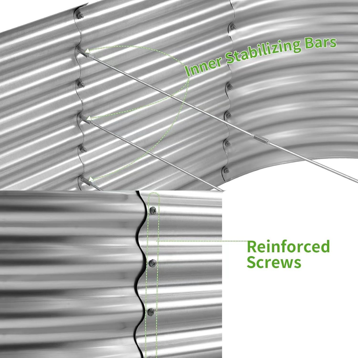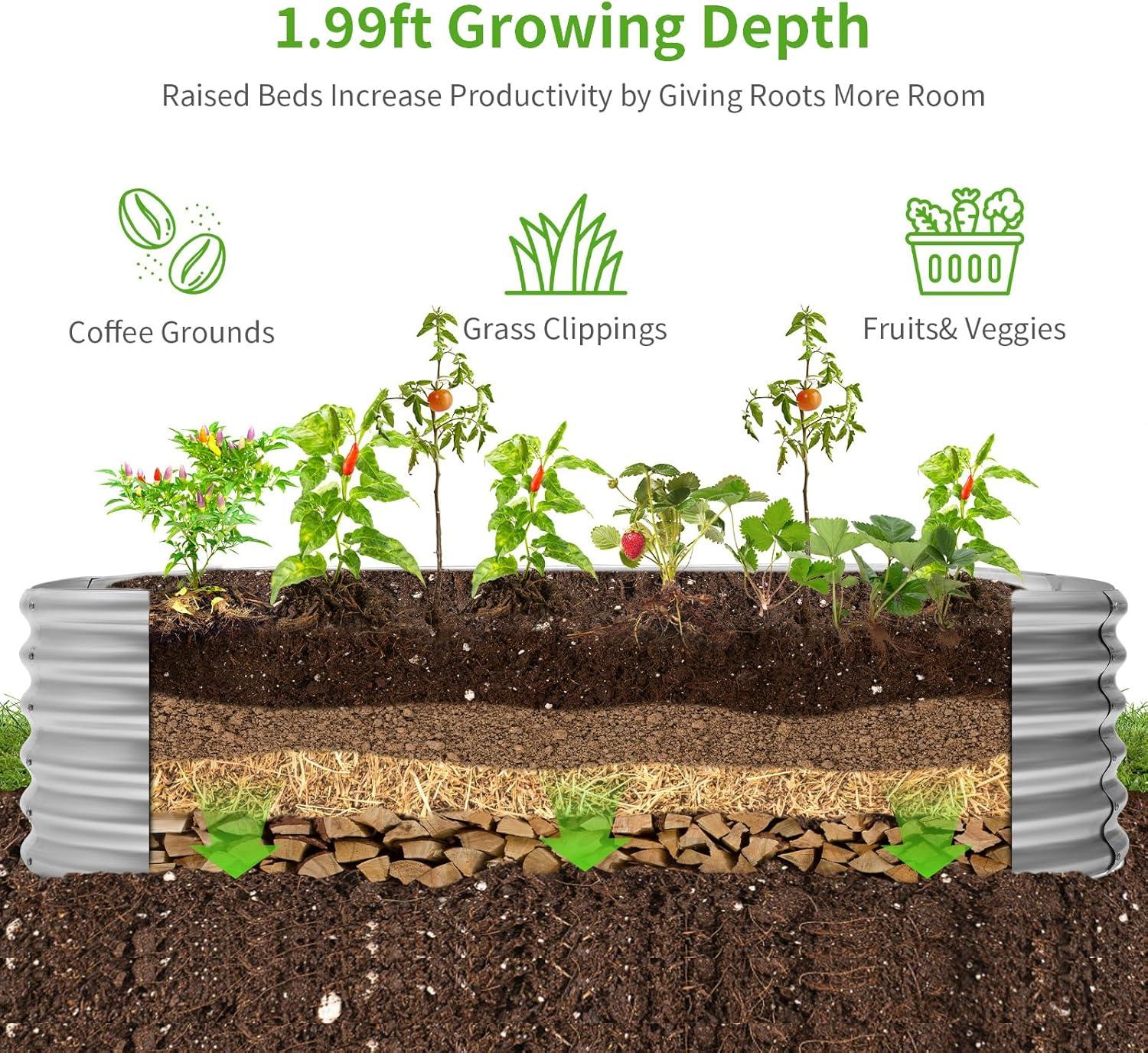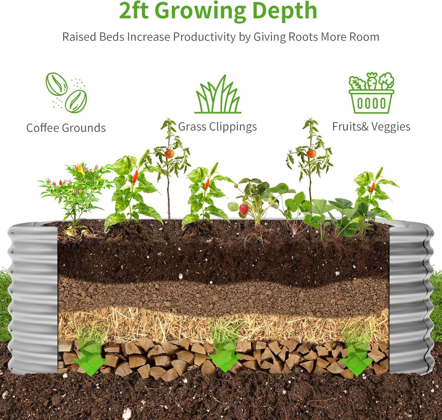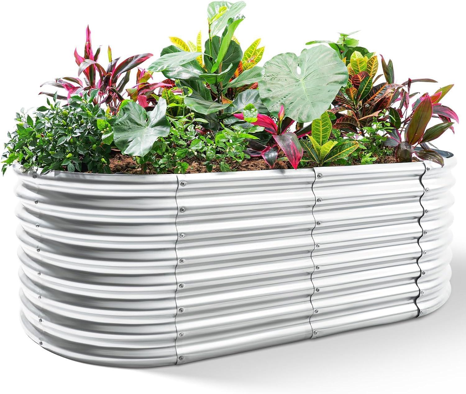 Land Guard 24“ Tall 4×2ft Galvanized Raised Garden Bed Kit, Galvanized Planter Garden Boxes Outdoor, Oval Large Metal Raised Garden Bed for Vegetables(Pearl White, 4×2×2ft)(Classic Silver)